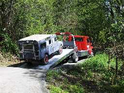 April 29, 1999 Loose EndsWe had breakfast with John's Mom and Dad. It was good time to talk, as the rest of the days were scheduled to be fairly full, and we didn't know when we would have time to talk with them again. So, we took advantage of that. Isabel was also really nice and asked me to talk with their Japanese neighbor, who had fallen and hurt her knee during the winter, and was going to get surgery on it in a few days. The neighbor was fairly scared of what was going to happen, as she didn't know what to expect. So, I called her and asked her to come over. She hobbled over and sat down in the kitchen and we talked for a good two hours. John and I went over nearly everything that happened, from before the surgery all the way through surgery, and then everything that we remembered about the drugs, care, and physical therapy that happened afterwards. She left looking much reassured. So that was very good. The problem was that we were late for our appointments. I hadn't really watched the time, and we ran to the old house, the Redmond house, pulled out the four things that we remembered that we had left and wanted to have, found out that the skylight hadn't been put in by the guys doing the roof, found that the 109 Land Rover was still in the driveway, and then ran for lunch. The four things that we remembered were a sweater drying rack, two fire extinguishers, and the recycling bins. They were all things we could use in the new house, especially now we had almost the same model of dryer. It was rather sad to go there and leave so quickly, with the smell of all the green life everywhere and the sound of the frogs and the shade of all the trees. There was wind in the trees, and the brook at the bottom of the cliff was babbling too. I am really going to miss all the water. Throughout the day I realized, and noted, that the forest encroaches everywhere in the Seattle area. Even in the middle of strip malls, parking lots, and development there are trees. Not just wimpy little trees that are planted in little holes, but entire tracts of huge fir trees. Where there are trees planted, they grow large, filling the area given them and overflowing, cracking sidewalks, lifting streets, and filling in all the available earth. Things grow everywhere. And when I lived in its borders I wasn't quite as aware, for it is a slow but steady phenomena that happens every day. The only reason I was aware was that I had come from something so different. The quick drive from the house all way to Bel-Red showed been a lot of the trees. We went to a little Vietnamese restaurant that Jon Singer once took us to, but this time at the invitation of Ngoc, as it was one of her favorite places to eat. There she introduced us to the delight of Pho, which is the Vietnamese equivalent to ramen, but with rice noodles and an unsalted beef broth, and it was served with fresh vegetables that were crisp and sweet. There was an opal basil that was peppery and minty all in one. It was very good. After lunch we went to Bellevue and signed all papers to close the house. It turned out that the buyer had already signed all the papers on Monday, so she was very sure that she was going through with the closing. The closing house told us that the check would arrive Friday evening, or at worst Monday morning. It would be deposited to our accounts electronically, so we didn't have to run around town with the check to deposit it in the proper accounts. That was a relief. It seemed such a small thing to end this entire period. All this activity finishing in something so small as the signed words on pre-printed papers. Something of a let down. From the office buildings, we headed down along Lake Sammamish, and dropped by a private residence that was the place of business for the septic tank guy that fixed our septic system. John was there to drop off a check for all the work he had done. the house was gorgeous, and right on the shore of the lake. It seemed a good place to work from. From there we went to the Redmond office and I got to sit and talk with Bob for while, as John did a number of phone calls to see what was up with our last Land Rover. A lady had said that she would buy it, and take it off the property, but she flaked. So, John connected up with another buyer while we were in the office, and arranged for the pickup and delivery of our second-to-last car. The Passat had been waiting patiently for us in John's Mom and Dad's house. It was happy and had started right up when we jumped in in the morning, after sitting for nearly a month in their garage. We did all the errands and running around in it, slowly accumilating stuff and more stuff as we ran around like crazy on all the various trips, meetings, and errands. So we raced back to the Redmond house and just as we pulled back up out of the driveway, a tow truck with a flatbed pulled up and stopped at the top. The driver got out, talked with John to establish that, yes, indeed, this was the place, and then we went down and he loaded the Land Rover onto his flatbed. We then went through Seattle rushhour traffic to get to the place that it had to go to. At 3 p.m. the freeways were already clogged with cars, thickening and slowing around the 405 interchange with 520, nearly stopping until about sometime after Totem Lake. Yes, the worst traffic in the U.S. of A.. It was a beautiful day, though, sunny and clear and perfect, and we had the sun roof open and the familiar radio stations on and it was really quite nice. I got to look around a lot and snap shots of lots of different things, and we got there soon enough. That was good. The new owner came out of his house as we pulled up, wrote the check, and we were good. John deposited in the back on the way back and we were done with that loose end as well. There was a trip back into work and we got our yearly reviews of the four months that we've been with the company. So it was cool, and I got a raise that reflected both the amount of