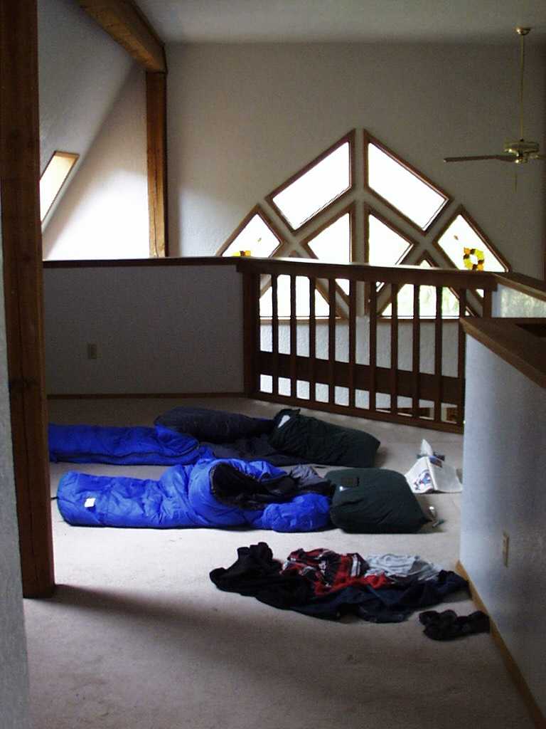 March 27, 1999 Hard BedsOoof. Already sore, tired, and we're not even out of King County. For all that we said, yesterday, that we'd take off today, we only got as far as John's parents' house, which, I guess, is an accomplishment in and of itself, but it's been a really full, exhausting day. Got a whole lot done, but it all feels so weird, like everything is now thrown in the air and there is no solidity to anything anymore, no real balance, no grounding. Maybe, in ways, it is because that is exactly what's happening. The party was surprising, last night. It shouldn't have surprised me, but it did, as dozens and dozens of people showed up, with the shorter notice, there weren't the out-of-towners, or at least, not all the out-of-towners, that Fezzik's party had. Johanna and John did come up from Portland, and a few of John's Land Rover folks showed up as well, but the bulk of the folks that showed up were Data I/O folks, nearly all of them ex-employees, either of the hardware groups that John and I had worked for and with or of the Synario group, scattered or there. It was a lot of folks. A few of the Internet folks showed up, including Jon Singer and John and Johanna. One of John's Land Rover folks showed up as well, and was bewildered and impressed by the sheer number of folks that showed up. It was pretty insane, all in all, as John and I tried to make some time for everyone that appeared. It was kinda hard to say good-bye to everyone in a meaningful way, but... well, there it was. I don't really think it hit me even then. It was just getting together with all the familiar friends and drinking, eating and talking with them again. Around 9 p.m. Redhook had a band come in and that drove away most of the folks as the music was so loud there really wasn't a way to talk much after that. A handful of folks went to the Holiday Room in Redmond, a smoky little dive in a hole next to the Hotel restaurant under the last great poker game in the state, and we sat and drank and talked for a long while longer. Dave Kohlmeyer, John and Johanna, Fish, Bob, Ginger and Stacy all came and we got smoked and had a good time just talking one last time. We said bye to those folks around midnight, turned into pumpkins and went home to sleep. Oh... right... around 3:30 pm, between appointments and the party and meetings, we managed to get home, yesterday, and found the house echo'ingly empty and Umit and his men on one last round through the house to pick up anything they might have forgotten. It was astonishing. We'd hoped to get there at 3:30 to help with the last bits of getting things into the van, but as it turned out the timing was all perfect, and they'd gotten everything in already, and were just finishing up when we got there. We wandered about the echo'ing house and it was filthy with mud from outside, but otherwise, every room was utterly empty. They'd done everything in eight hours. Carl points out that I should point to Graebel's web page because I was so happy with them. I'll probably point to it some more when we arrive and get things unpacked to see if anything's actually been smashed, broken or abused. But from the packing up side they were fast, efficient and utterly professional. I was very pleased. So when we got back from the party it was to a cold and echoing and empty house. Fezzik was bewildered when he finally got in the house and wandered about sniffing everywhere as if to try and find the things that were missing. John and I got out the sleeping bags that we'd saved away and put them up in the loft as the upstairs was warmer than downstairs, the heater worked just fine, but with all the rooms so empty the warm air seemed to flow up much more readily. Fezzik first slept against John then against me, waking me up in the middle of the night when he tried to burrow under my bag and then finally sighed and lay on my arm to fall asleep there and nearly put my arm to sleep. It was a hard floor. I didn't sleep all that well, but in the morning was cheerful enough at getting up and starting to pack the last things in the last boxes that we were taking with us in the van. As John pointed out later, each successive box took longer to pack, as it was just getting harder and harder to get the energy up to finish. John got me McDonald's for breakfast as he went out to dump the last of the recycle stuff at the recycle center. His dad said that he'd take all the hazardous waste stuff we were throwing away out to West Seattle when he had a chance, so all we had to do with that stuff was get it to John's parents' house. I took the morning to get all the cleaning materials into boxes and then get all the plants watered and then all the rooms vacuumed. Finally, I got everything out of both refrigerators and freezers and dumped them into boxes. There was a lot of stuff, eventhough we'd eaten most of what we could eat. Then there was lunch with Jon Singer, Bob and Mai and their son at Yea's Wok. I'd actually had the bright idea of having the three of them, plus Billy B. out to dinner at Yea's Wok when John and I were still thinking about leaving on Sunday. But I gave up on it when we thought we'd go earlier. Singer snagged on the idea, though when I brought it up as a side bar on Friday night's party, and he really, really wanted to do it, so we decided that lunch might be possible. So we met there at lunch time, and it all turned out really well. I liked it because it gave us a chance to say good-bye to Mai as well, as she couldn't make the party the night before, and what better Chinese way to part than over a meal? Yea's Wok didn't disappoint. It was marvelous and delicious and Singer was in ecstacy over the quality of the food. Mai and I got to talk for a while, which is always good for both of us, and it was well worth the time. What's best is that I actually managed to snag the check, this time, for the whole thing, and I was very happy about that. Yeah, I know, I'm more Chinese than I sometimes th
